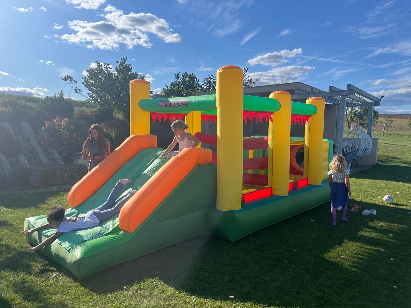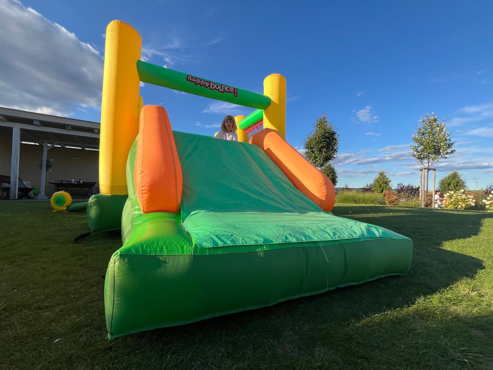 Nafukovací atrakce Activity 7v1 nabízí skákaní, klouzání po skluzavce, prolézání tunelem, lezeckou stěnu, přelézání a prolézání přes překážky, házení si s míčky v bazénku nebo basketbalový koš.